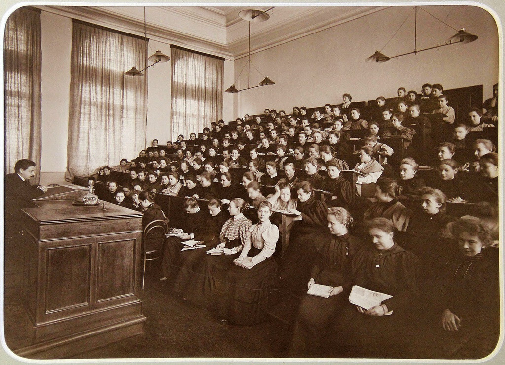 В августе 1895 года Елизавету Дьяконову наконец зачислили на Высшие женские курсы в Петербурге. За следующие четыре года произошло очень многое: смерть любимой бабушки, раннее замужество и отъезд в Киев младшей сестры Вали, которая раньше тоже мечтала об учебе, студенческие волнения в Петербурге, к которым присоединились и многие курсистки (а Лизе пришлось делать непростой выбор между солидарностью и преданностью делу женского образования). Случился и духовный кризис — искренне верующая Лиза вдруг поняла, что больше не верит в Бога. Чем ближе к окончанию курсов, тем больше ее мучил и вопрос о том, что делать дальше — учитывая те ограниченные возможности, которые имела тогда деятельная женщина из простой семьи в России.