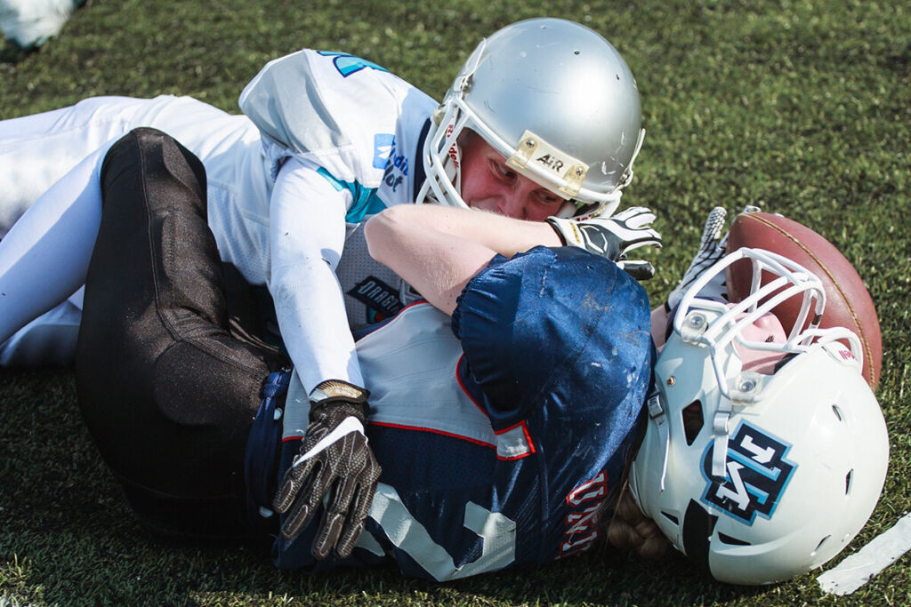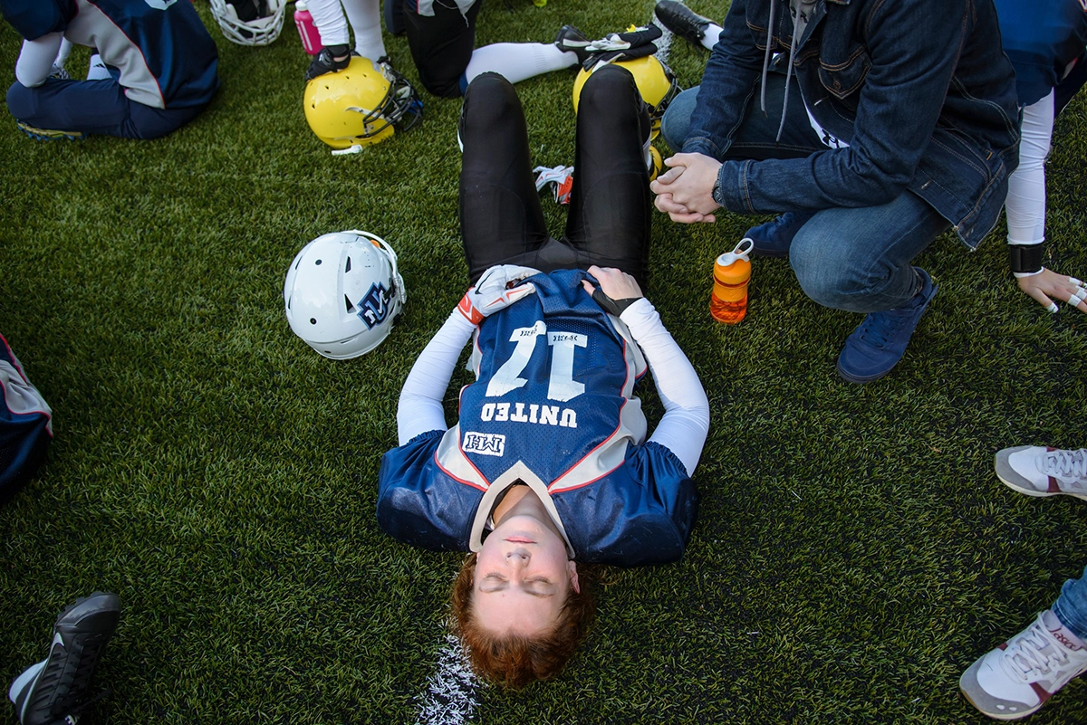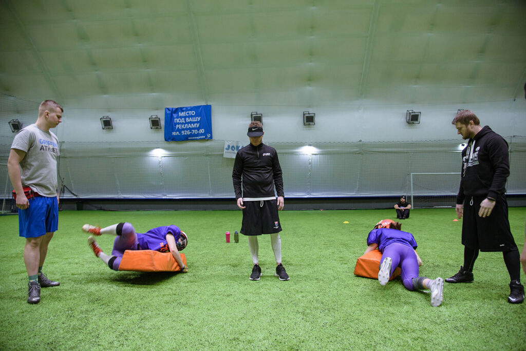 Тренировка «Могучих уточек» в Воронеже.В Воронеже девушки не смогли набрать полный состав, поэтому они тренируются вместе с мужской командой «Могучие утки» и ездят играть легионерами за московские команды. Фото: Кристина Бражникова | Гласная Воронежские девушки в раздевалке перед тренировкой на сборах.Раз в год санкт-петербургская команда «Валькирии» старается организовать сборы игроков со всей страны, куда приглашают тренеров национальной женской сборной США. Фото: Кристина Бражникова | ГласнаяКоординатор защиты американской женской сборной по американскому футболу Джеф Грайбаш (в центре) тренирует девушек на сборах в Санкт-Петербурге. Фото: Кристина Бражникова | Гласная Девушка из команды Sechenov Phoenix разминается перед игрой в Москве. Фото: Кристина Бражникова | ГласнаяТаня помогает Люде затейпировать колено, чтобы снизить риск травмы во время игры. Фото: Кристина Бражникова | ГласнаяАлла помогает Лизе заплести волосы перед игрой.Команды приходят на поле минимум за два часа до начала игры, чтобы разметить поле, экипироваться и размяться. Фото: Кристина Бражникова | ГласнаяАлевтина и ее команда «Единороги» перед матчем. »Единороги» базируются на основе мужской команды «United» и делят с ними экипировку в целях экономии затрат. Если мужчины начали играть в американский футбол в России в конце 1980х, то первая женская команда появилась только в 2011 году в Санкт-Петербурге. Фото: Кристина Бражникова | ГласнаяМатч между «Стрекозами» и «Единорогами».За год девушкам удается сыграть всего 6-7 матчей. Все игры организуются за свой счет. Фото: Кристина Бражникова | Гласная Лиза отдыхает на бровке поля во время матча.Большинству команд не удается укомплектовать полный состав, поэтому опытным игрокам приходится выходить на поле на разных позициях, что физически дается тяжело. Фото: Кристина Бражникова | ГласнаяТренер «Единорогов» дует на травмированное плечо игрока, так как дежурившая на матче бригада медиков в этот раз приехала без «заморозки» (местного обезболивающего).Фото: Кристина Бражникова | Гласная «Единороги» идут на стадион после обсуждения игровой стратегии с легионерками из Воронежа в парке. Фото: Кристина Бражникова | Гласная В Воронеже тренировки обычно проходят поздно вечером, потому что в это время аренда поля дешевле. Фото: Кристина Бражникова | Гласная«Сирены» участвовали в московской женской лиге только в первый год под своим флагом, после они переквалифицировались во флаг-футбол, а отдельные участницы стали выступать на чемпионате легионерами в других командах. Фото: Кристина Бражникова | Гласная Настя перед игрой против ее бывшей команды «Единороги». Фото: Кристина Бражникова | ГласнаяЗахват игрока с мячом. Фото: Кристина Бражникова | Гласная«Единороги» атакуют «Стрекоз». Фото: Кристина Бражникова | Гласная«Единороги» обсуждают с тренером тактику игры во время перерыва. Фото: Кристина Бражникова | ГласнаяДаша начала играть в американский футбол в Воронеже, но теперь переехала в Москву по работе и перешла из «Могучих уток» в «Единороги». Фото: Кристина Бражникова | Гласная Тренер помогает уйти с поля травмированному игроку. Фото: Кристина Бражникова | Гласная «Единороги» после выигранного у «Стрекоз» матча. В сезоне 2020 они заняли второе место в московской лиге. Фото: Кристина Бражникова | Гласная
