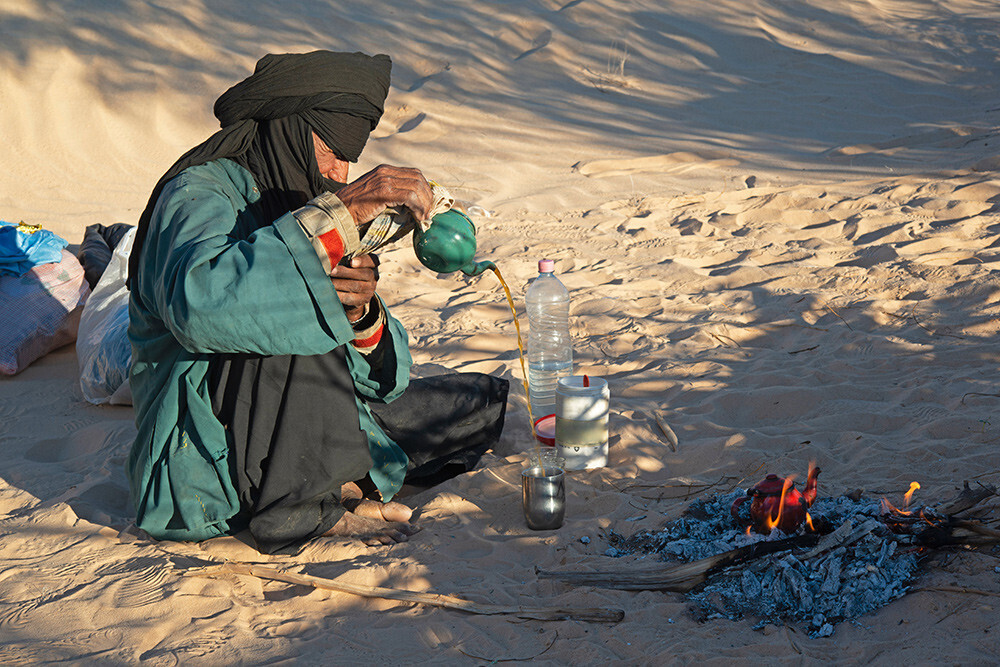 У туарегов среди мужчин принято носить тагельмуст — подобие платка, которое прикрывает волосы, лоб, подбородок, рот и нижнюю часть носа. Алжир, 2019 год. Фото: Christian Weiss | Unsplash
