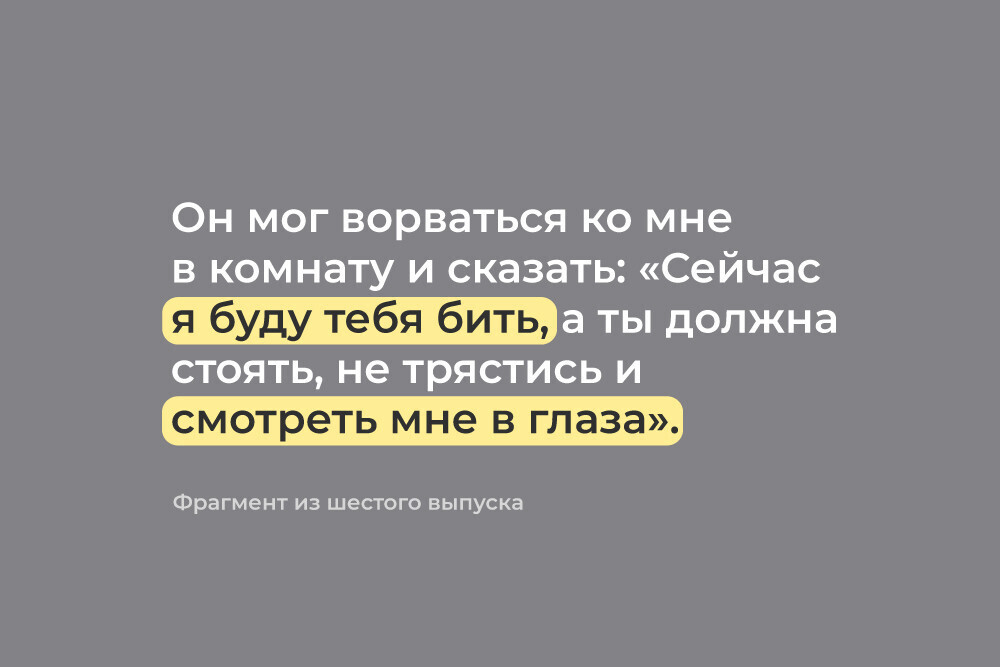 Соня: Две героини, кстати, после выхода подкаста написали нам, что им стало сильно легче, потому что они послушали истории других женщин и поняли, что не одни, что у них есть поддержка. [Так что у нас] миллион причин работать дальше — но я не очень рада, что их миллион.