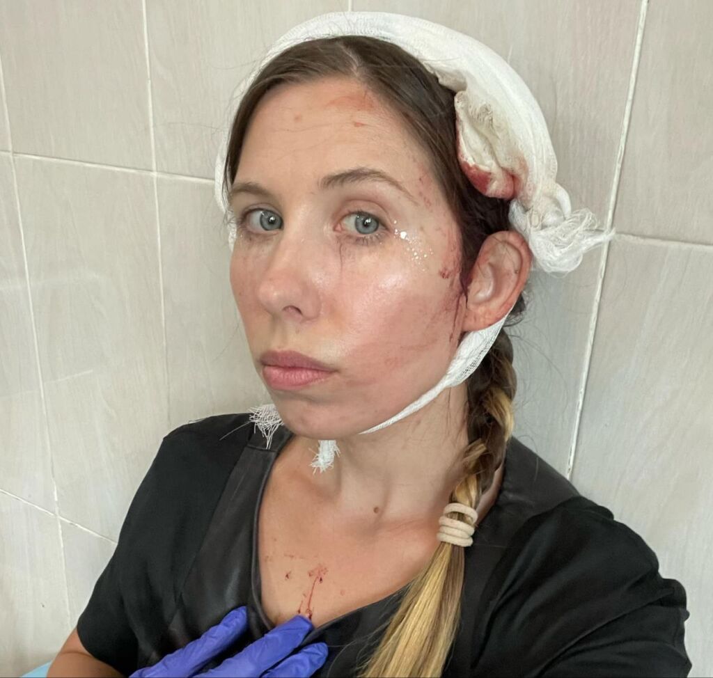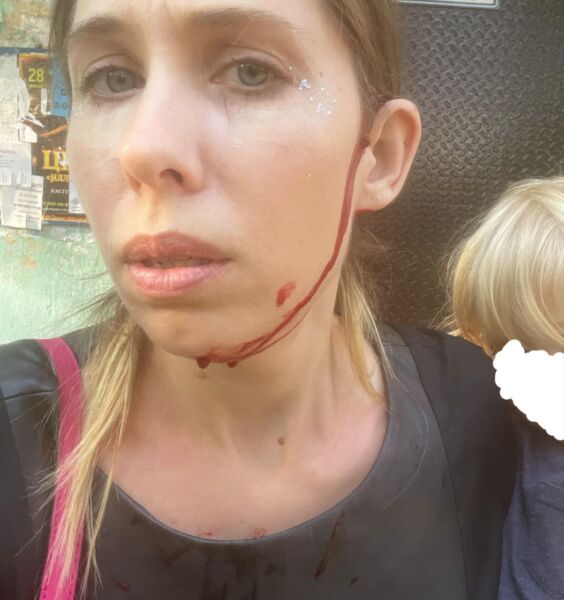 «Это второй этаж, я могла упасть, а у меня сын на руках. Но ему было абсолютно все равно, он ударил меня с той стороны, с которой я держала ребенка. Еще немного, и он мог бы попасть по нему… <…> Я позвонила в скорую тут же, не вставая, потому что у меня хлестала кровь очень сильно, все штаны пропитались насквозь», — рассказала Алина «Гласной».